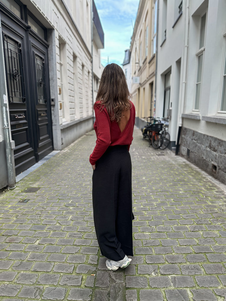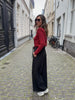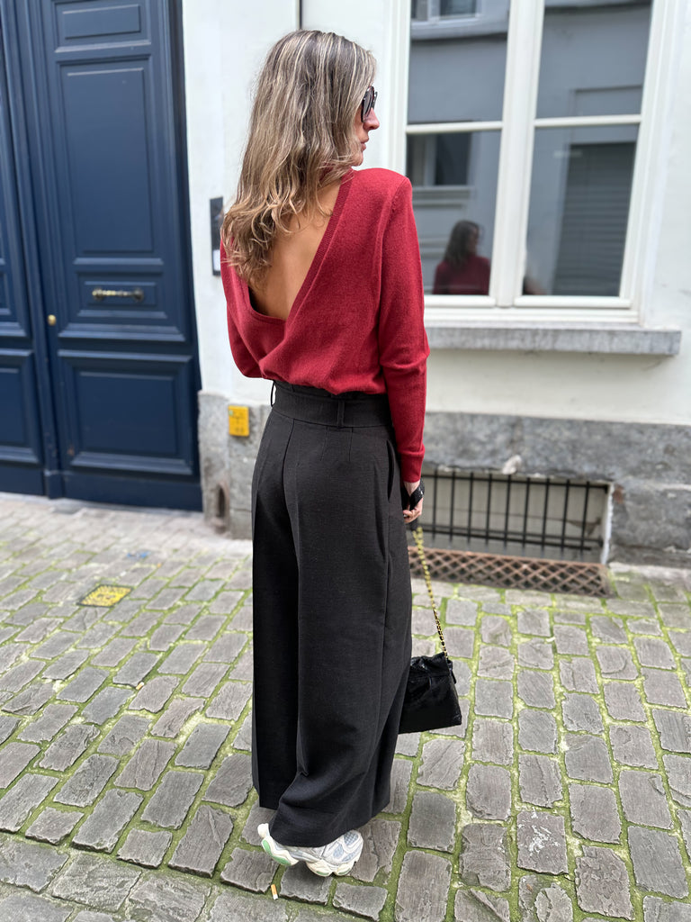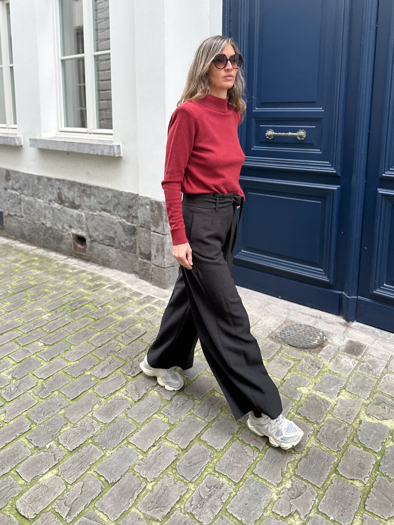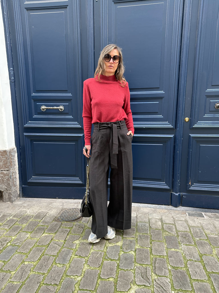 The JEANNE trousers elongate the silhouette with fluidity and precision. Its straight cut and wide structure the look while offering a beautiful freedom of movement. The high waist is marked by a removable belt to tie, naturally highlighting the curves. Darts at the front bring a "suit" touch to the trousers. An essential of the wardrobe, to wear with a satin blouse as well as a sweater.