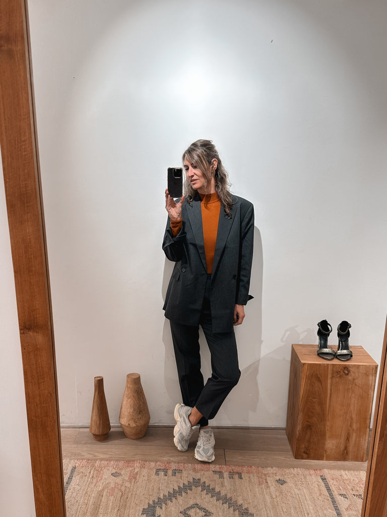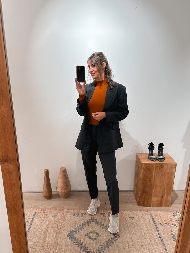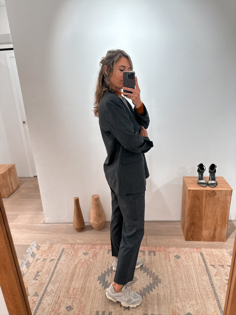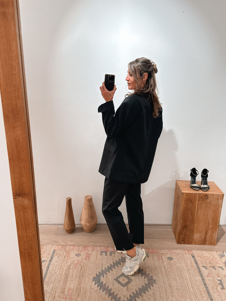 The Mary trousers have a straight slim silhouette and high waist. Shorter model. Combines beautifully with a fitted top.