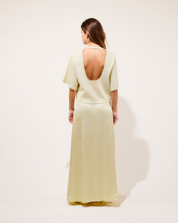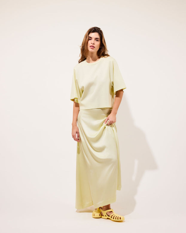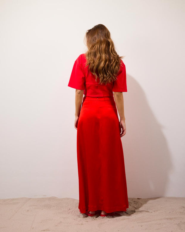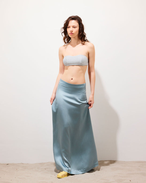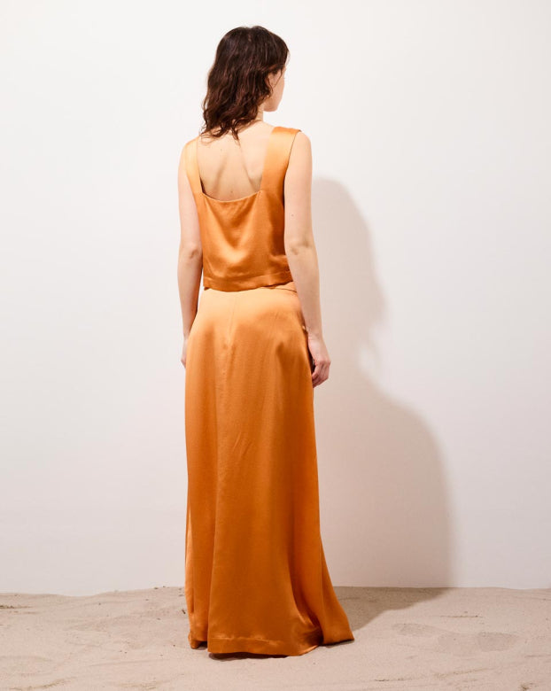 Gorgeous silk long skirt, fitted at the waist with a flared fit, giving it a very feminine shape.