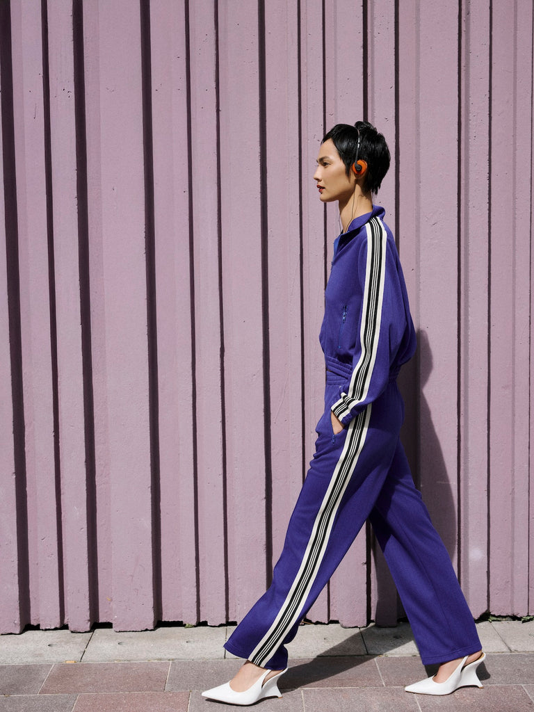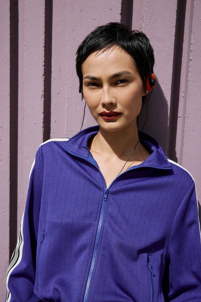The BECKER jogging jacket is inspired by retro sportswear. Its long sleeves highlighted with contrasting bands and its high collar give it a graphic and modern look. Its relaxed fit allows it to be worn open or closed, superimposed on a fitted top. A casual model to wear in the city, for a dynamic and stylish look.