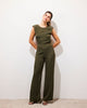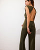 Elegant jumpsuit, fitted on top, with straight legs and a beautiful open back