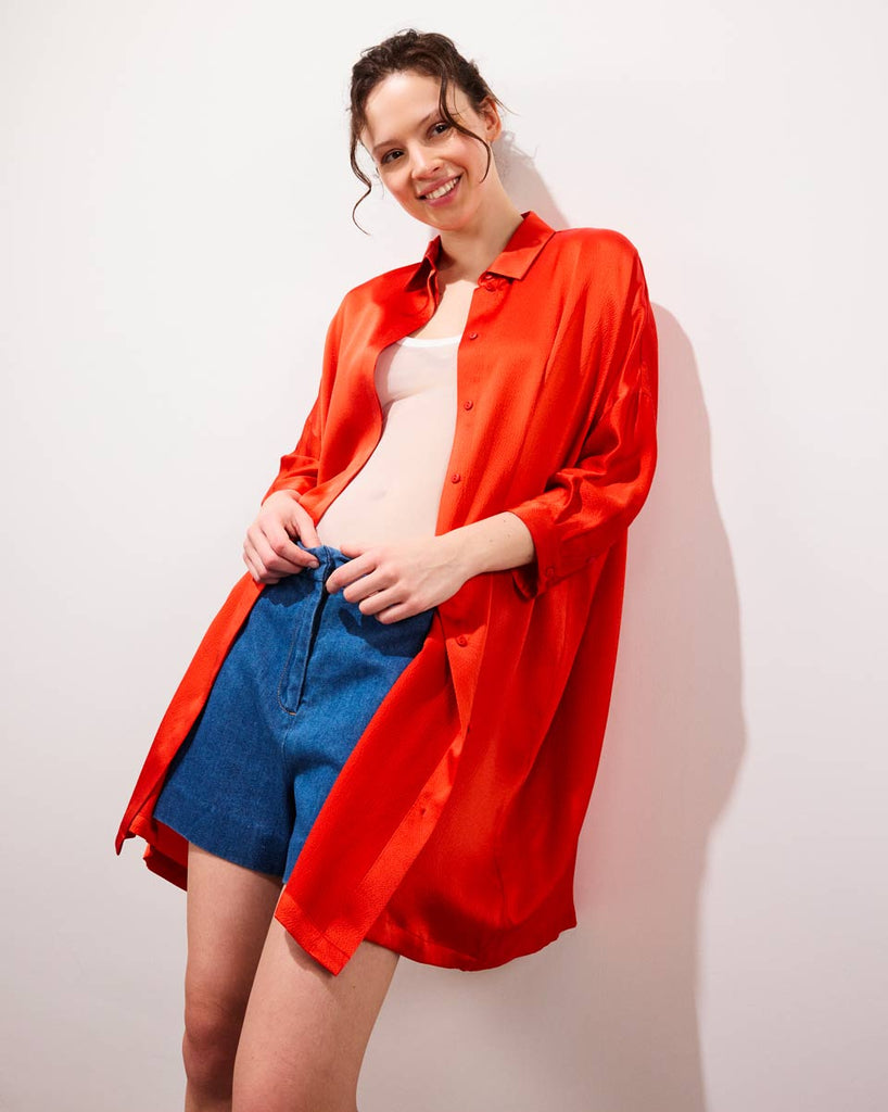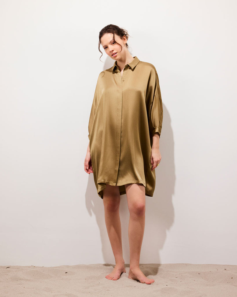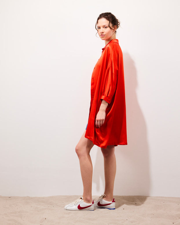 Flowy silk short dress.