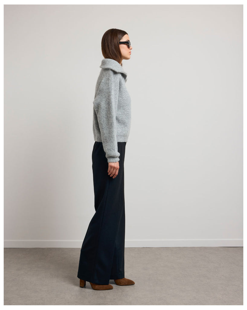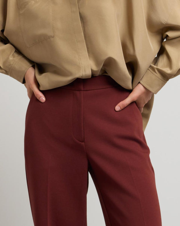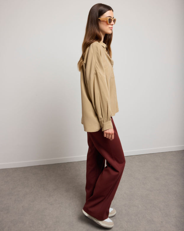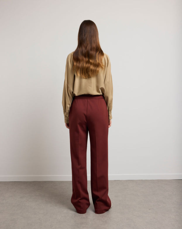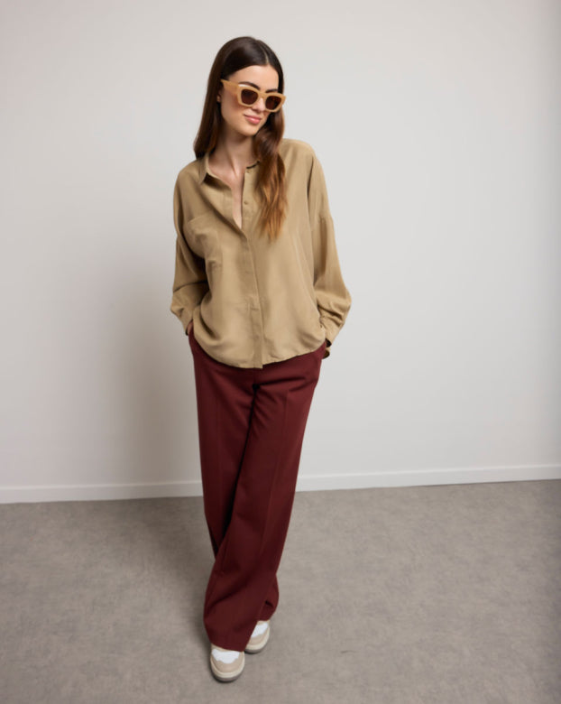 Our Andrée long pant has a timeless straight cut, structured by folds, which creates an assured look. The waist is highlighted by a belt, the pockets bring a functional and elegant note.